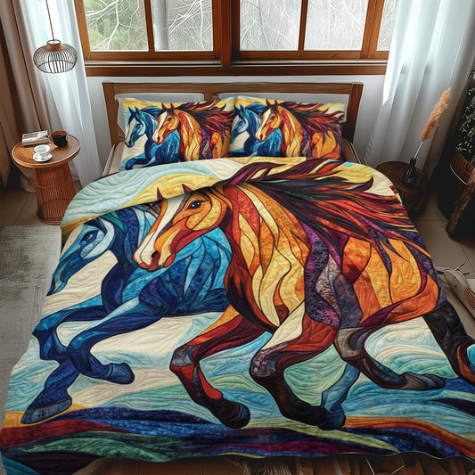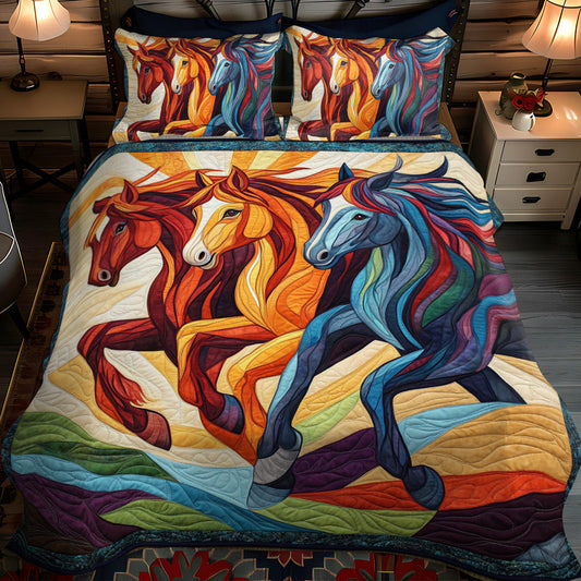 Elegant Horse Running 3-Piece Quilted Bedding Set NCU0PD579