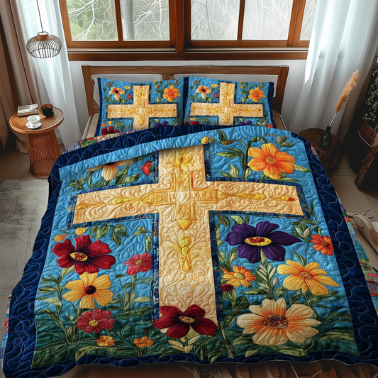 Blessed Cross 3-Piece Quilted Bedding Set NCU0VL501