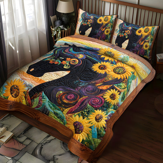 Sunflower Black Horse 3-Piece Quilted Bedding Set NCU0PD584