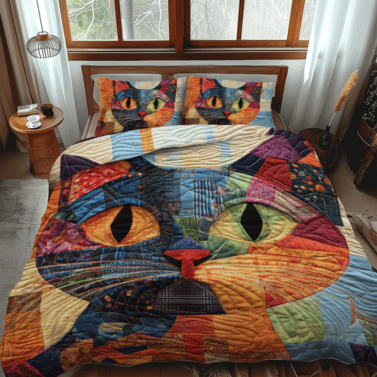 Artistic Cat-Themed 3-Piece Quilted Bedding Set NCU0PD639