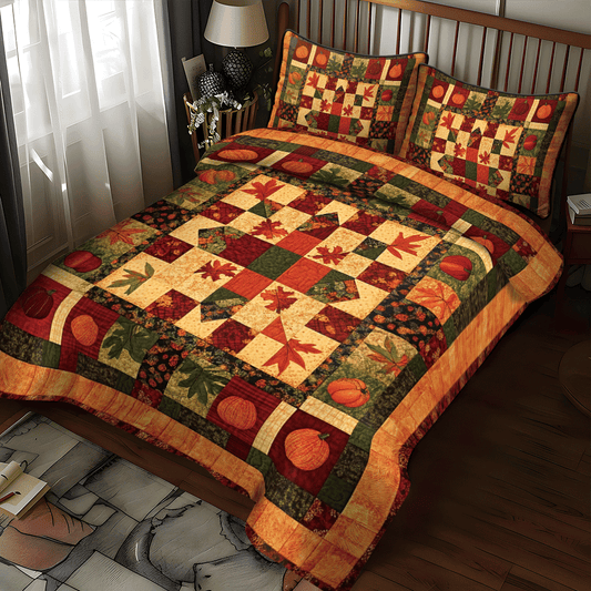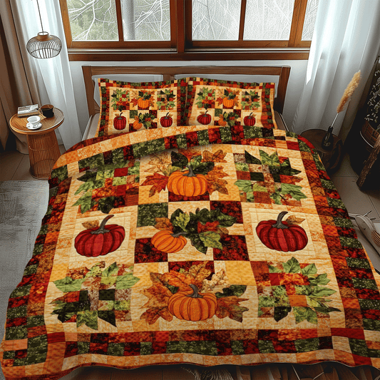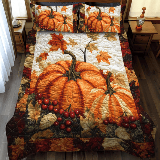 Pumpkin Thanksgiving Spirit 3-Piece Quilted Bedding Set NCU0PD703