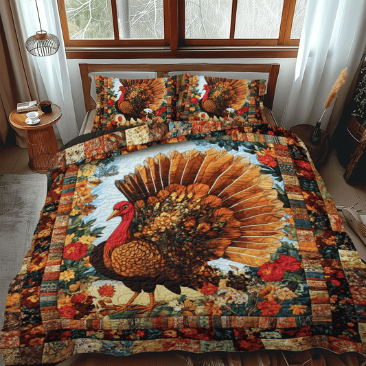 Autumn Magic Turkey 3-Piece Quilted Bedding Set NCU0PD705