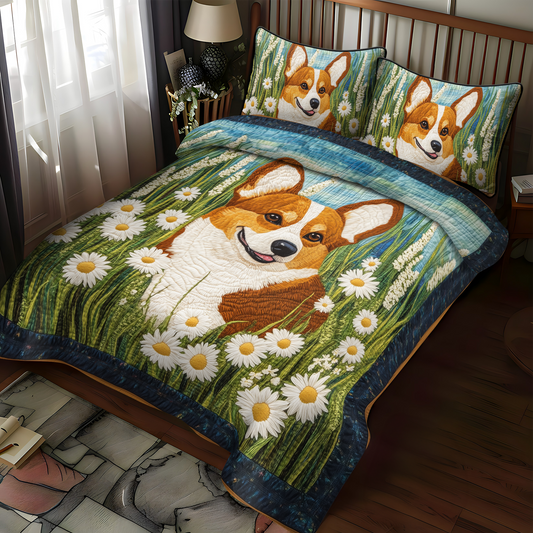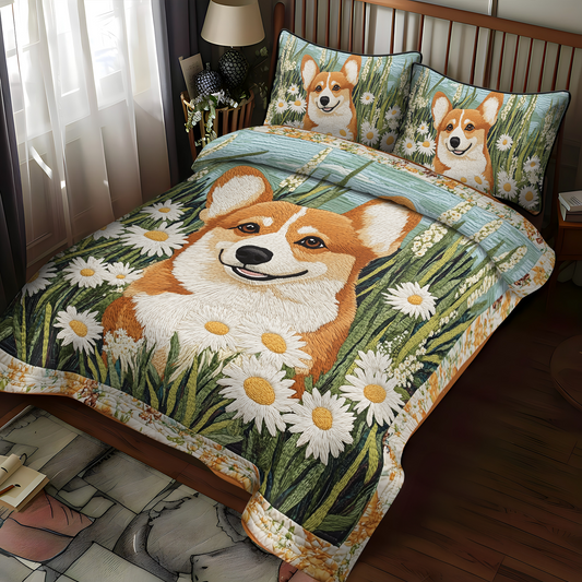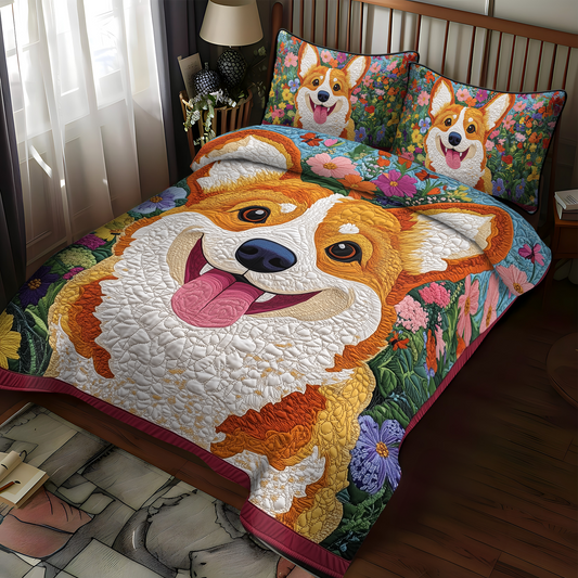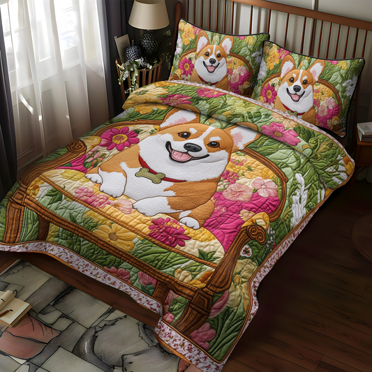 Corgi in Bloom 3-Piece Quilted Bedding Set NCU0DK1607