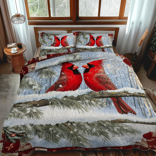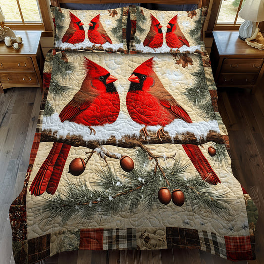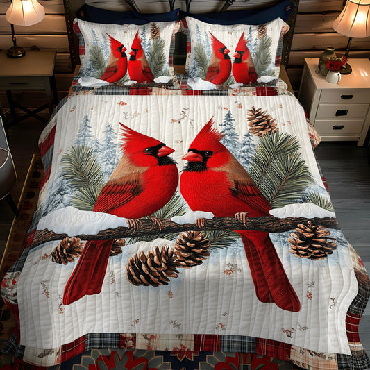 Winter Cardinal Bliss 3-Piece Quilted Bedding Set NCU0TL1505