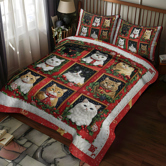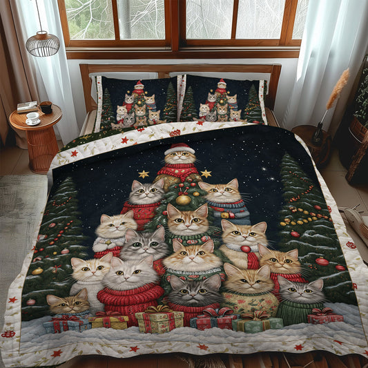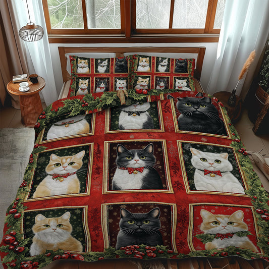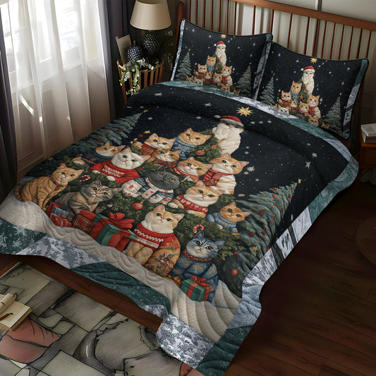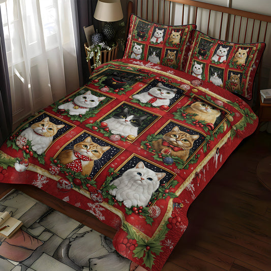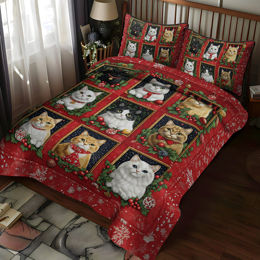 Yuletide Cats 3-Piece Quilted Bedding Set NCU0TL1756