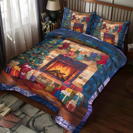 Furry Christmas Cheer 3-Piece Quilted Bedding Set NCU0TL1766