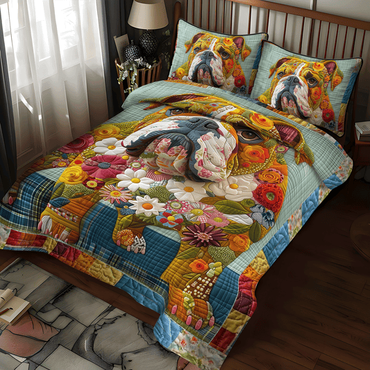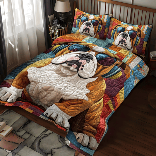 Cozy Bulldog Charm Quilted Bedding Set NCU0DV1681