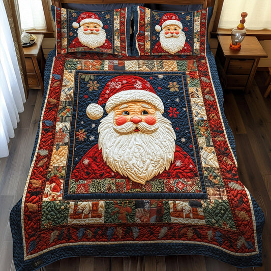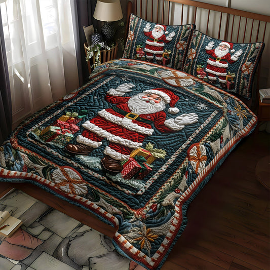 Sparkling Snowy Santa 3-Piece Quilted Bedding Set NCU0PT2119