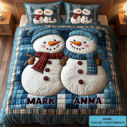 Frosty Friends Personalized Custom 3-Piece Quilted Bedding Set