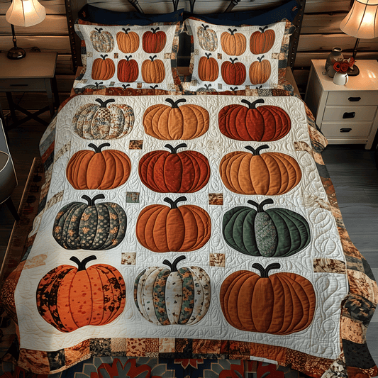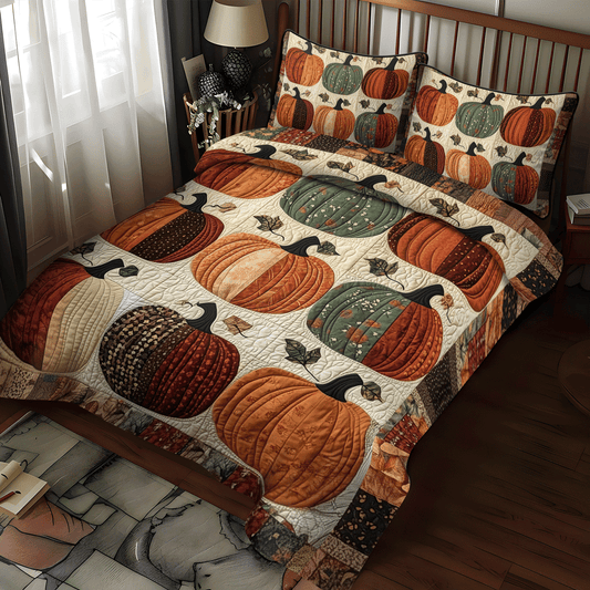 Harvest Pumpkin 3-Piece Quilted Bedding Set NCU0TH1847