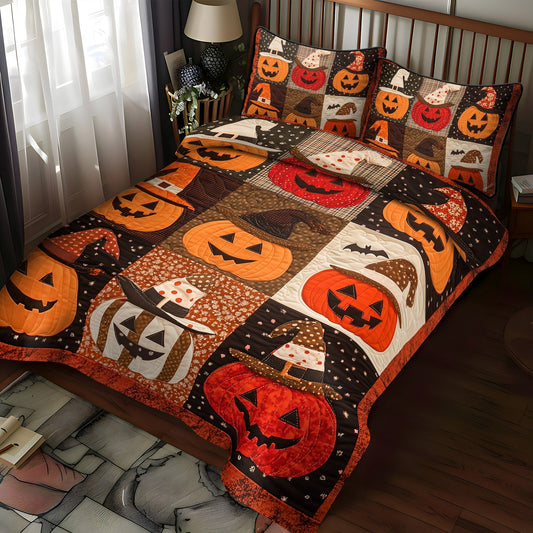 Halloween Pumpkin 3-Piece Quilted Bedding Set NCU0TH1848
