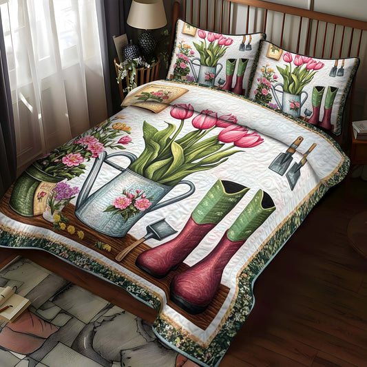 Tulip Time 3-Piece Quilted Bedding Set NCU0NT1157
