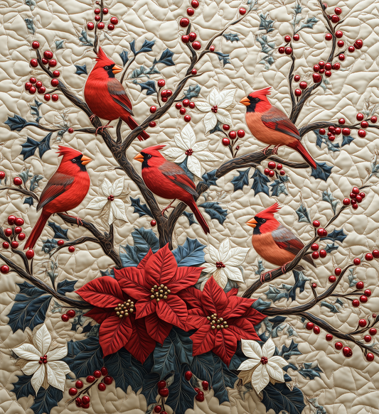 Winter Cardinal Tree Quilted Blanket NCU0DV1146