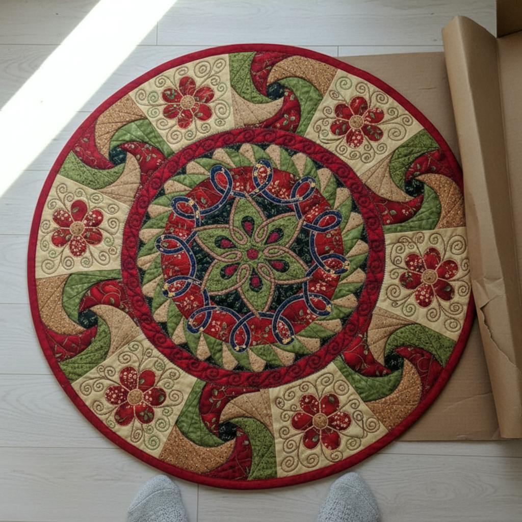 Our Quilted Round Mat combines style, comfort, and craftsmanship in one beautiful piece. With its intricate design and vibrant colors, it effortlessly adds elegance to any room. Perfect for cozying up your living area, it provides a soft, cushioned feel underfoot. Made from high-quality materials, it's durable and easy to maintain, ideal for everyday use. Whether used as decor or a comfy spot for relaxation, this mat brings warmth and charm to your home. A perfect gift for any occasion!