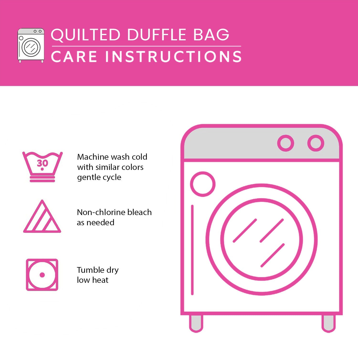 - Air drying is recommended to maintain shape and keep the bag in its best condition; tumble dry low only if necessary.