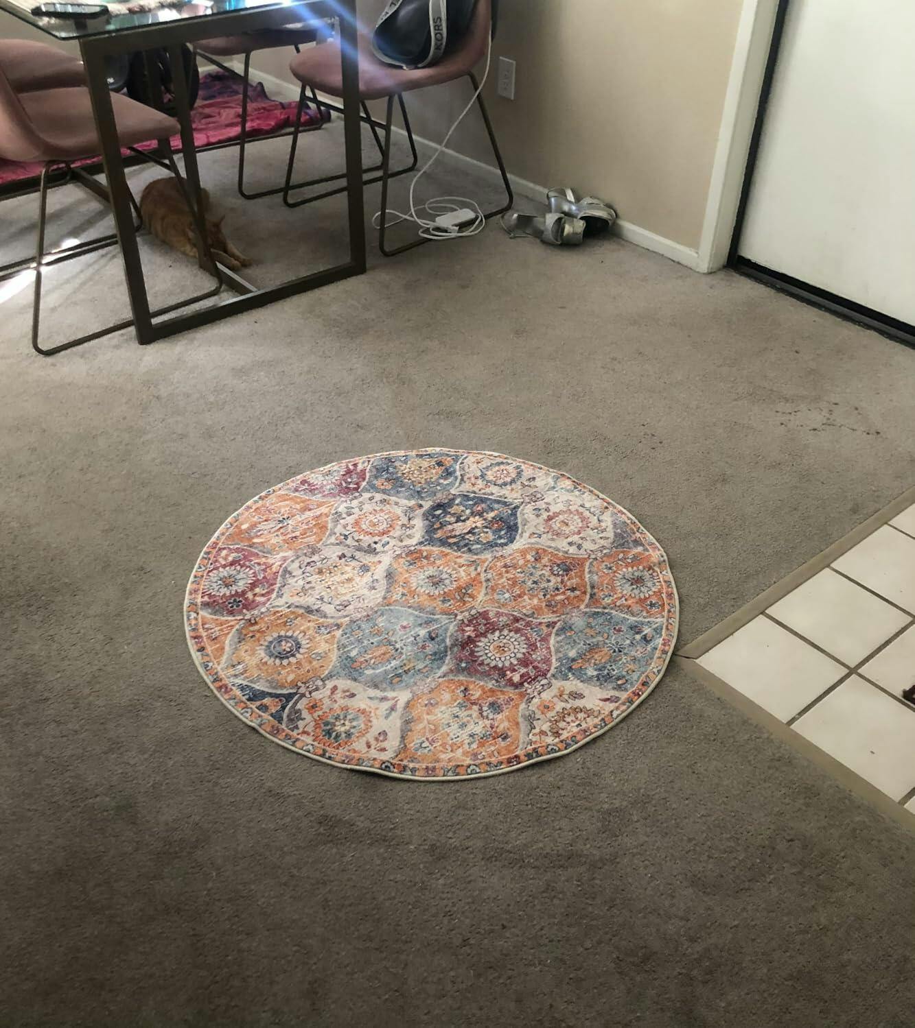 The color match was perfect, even better than on my screen. This round carpet is a great addition to the living room and feels incredibly soft underfoot.
