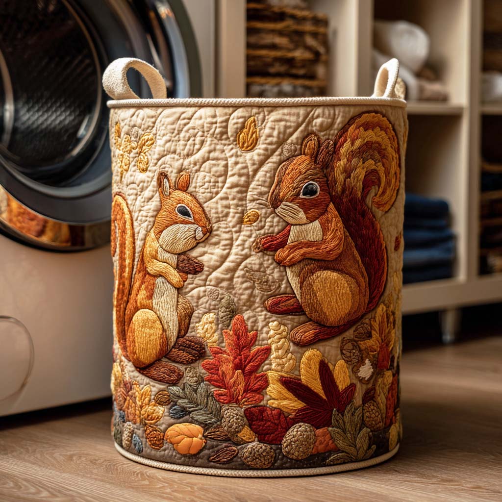 Golden Squirrel Quilted Laundry Basket NCU0NTD067