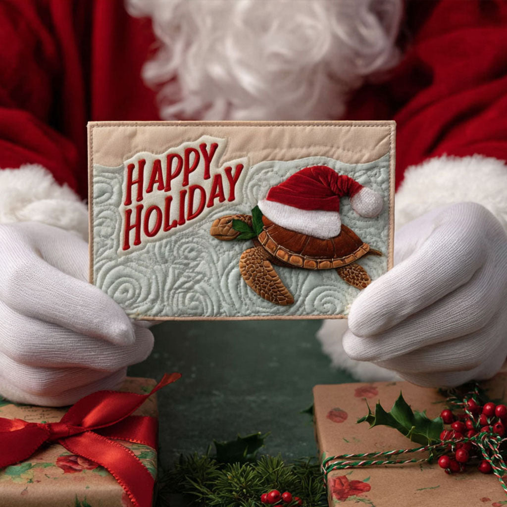 Holly Shell Holiday Quilted Fabric Postcard NCU0PTT2408