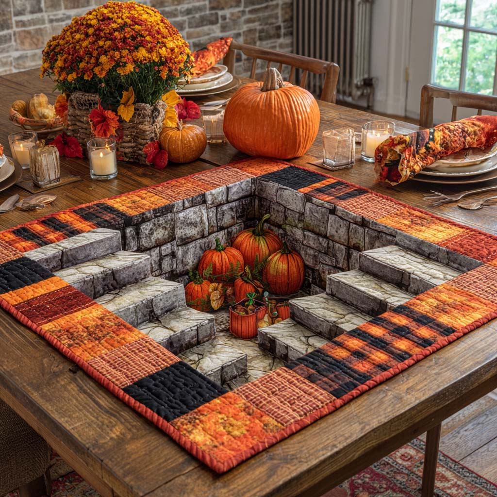 Plaid Stairway Pumpkin Cellar Quilted Table Topper NCU0NXD376