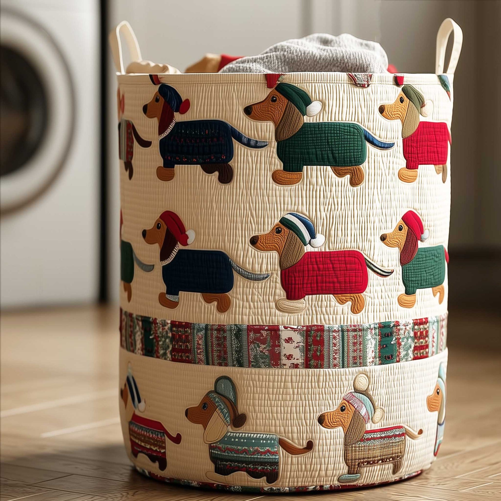Playful Dachshund Parade Quilted Laundry Basket NCU0HTT096