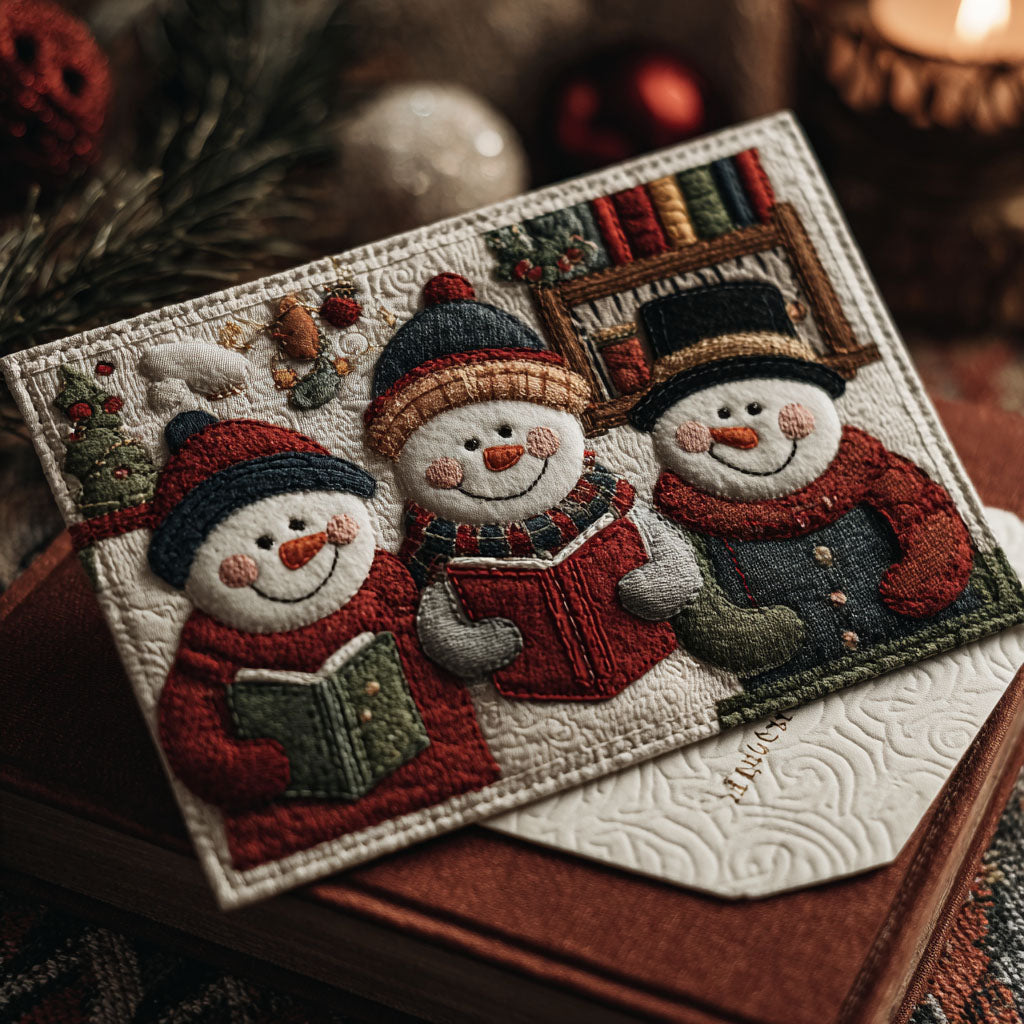 Snowman Storytime Quilted Fabric Postcard NCU0PTT2358