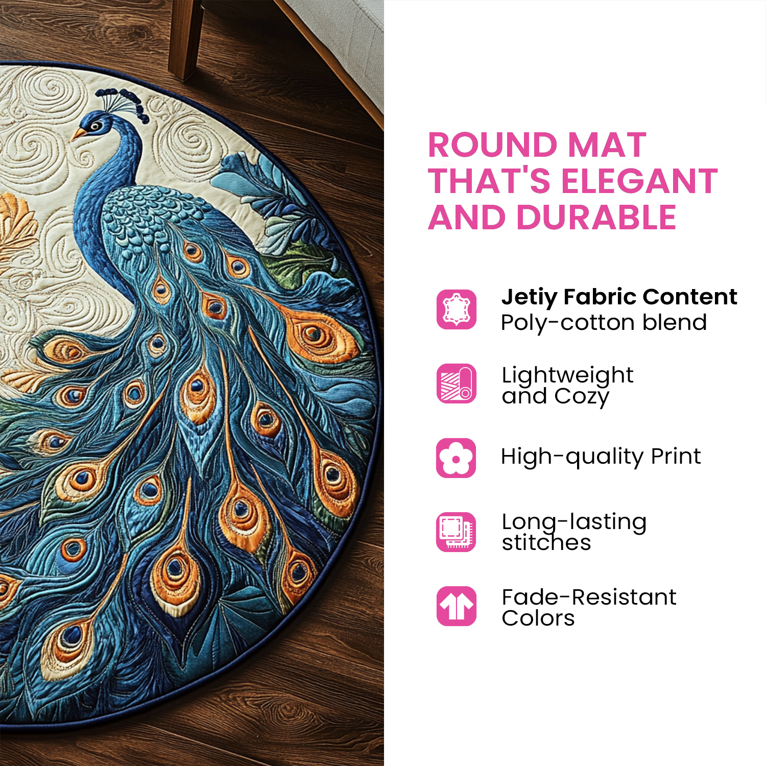 Our Quilted Round Mat combines style, comfort, and craftsmanship in one beautiful piece. With its intricate design and vibrant colors, it effortlessly adds elegance to any room. Perfect for cozying up your living area, it provides a soft, cushioned feel underfoot. Made from high-quality materials, it's durable and easy to maintain, ideal for everyday use. Whether used as decor or a comfy spot for relaxation, this mat brings warmth and charm to your home. A perfect gift for any occasion!