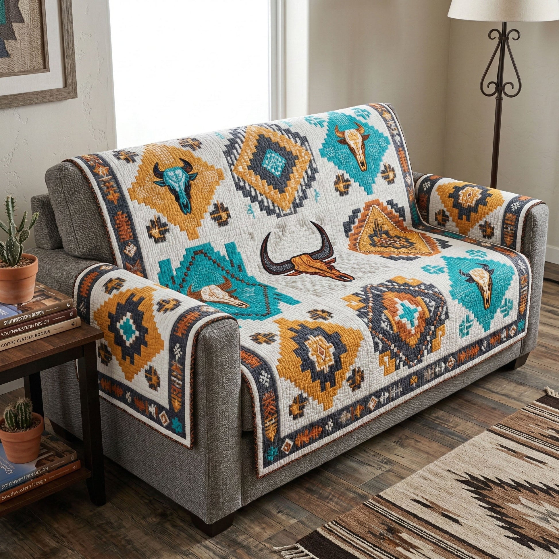 Western Skull Quilted Sofa Cover NCU0NTD1702